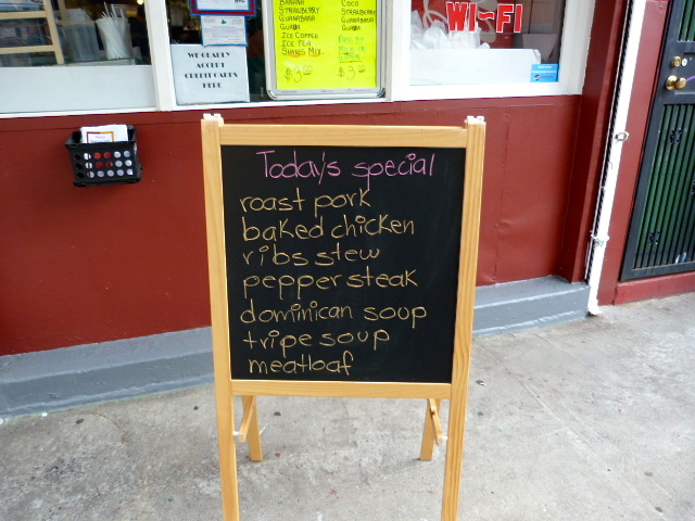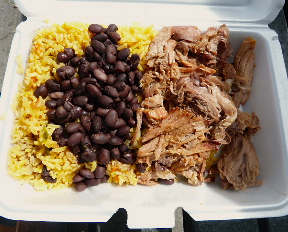 I ended up going for the old standby of roast pork with yellow rice and black beans. This isn’t quite the gut-busting portion of nearby Westside Coffee Shop, but for $8 I was definitely full. The generous portion of pork was super savory and reminded me of really good roast turkey from Thanksgiving. It wasn’t dry at all and also wasn’t full of fat like I’ve found at some places. In other good news, the yellow rice was well-cooked (you can also get white rice or plantains and salad) and I liked how the black beans were carefully ladled over the top and then another spoonful of broth was poured over for extra flavor.