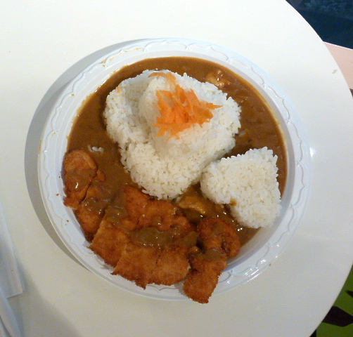 The curry here is kind of like what McDonald’s is to Shake Shack – not bad but not great either. There were small pieces of white meat chicken in the curry that was very gravy-like in consistency and looks, and then there was also a chicken cutlet alongside that was actually good. You also get a fair amount of rice in in three different heart shapes, ironic because the curry is likely going to clog that very organ.