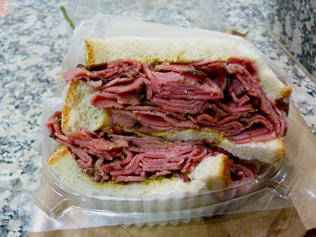 This was not the best pastrami you’ll ever have, but it was plentiful and good when slicked with mustard. The white bread wasn’t my cup of tea, but was just a vehicle for the salty, fatty meat anyway. My only complaint here was that the pastrami could have been warmer but it could have been because I walked a few blocks before eating.