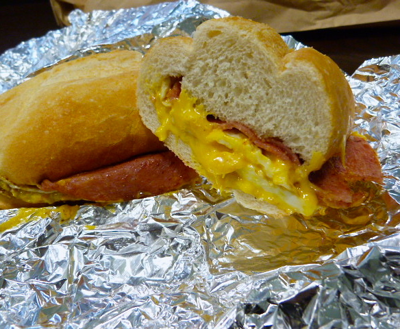 I hadn’t visited Jersey Mike’s Subs since they opened their first New York City location on Maiden Lane (btw. William & Pearl) last July. That initial visit showed they did a good job with sub sandwiches at a cheaper price than nearby Dave’s Hoagies. An overlooked part of the menu is the breakfast sandwiches, which are available all day and are cheap. One of the items on that menu involves Trenton pork roll, eggs and cheese and it is worth your stomach space.