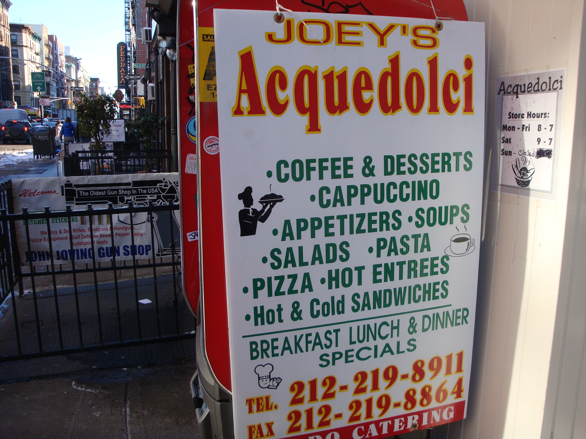 Acquedolci is on Grand St. (nr. Mulberry) not quite in the thick of Little Italy, but close. Lunch’erĀ Danielle had recommended the shop, saying she and her office mates order delivery from there all of the time. I decided to head up there since I’m sureĀ a lot of people working on the edges of Soho and Nolita eat in this neighborhood frequently. And I would be crazy to turn down an Italian sandwich recommendation. Read more »