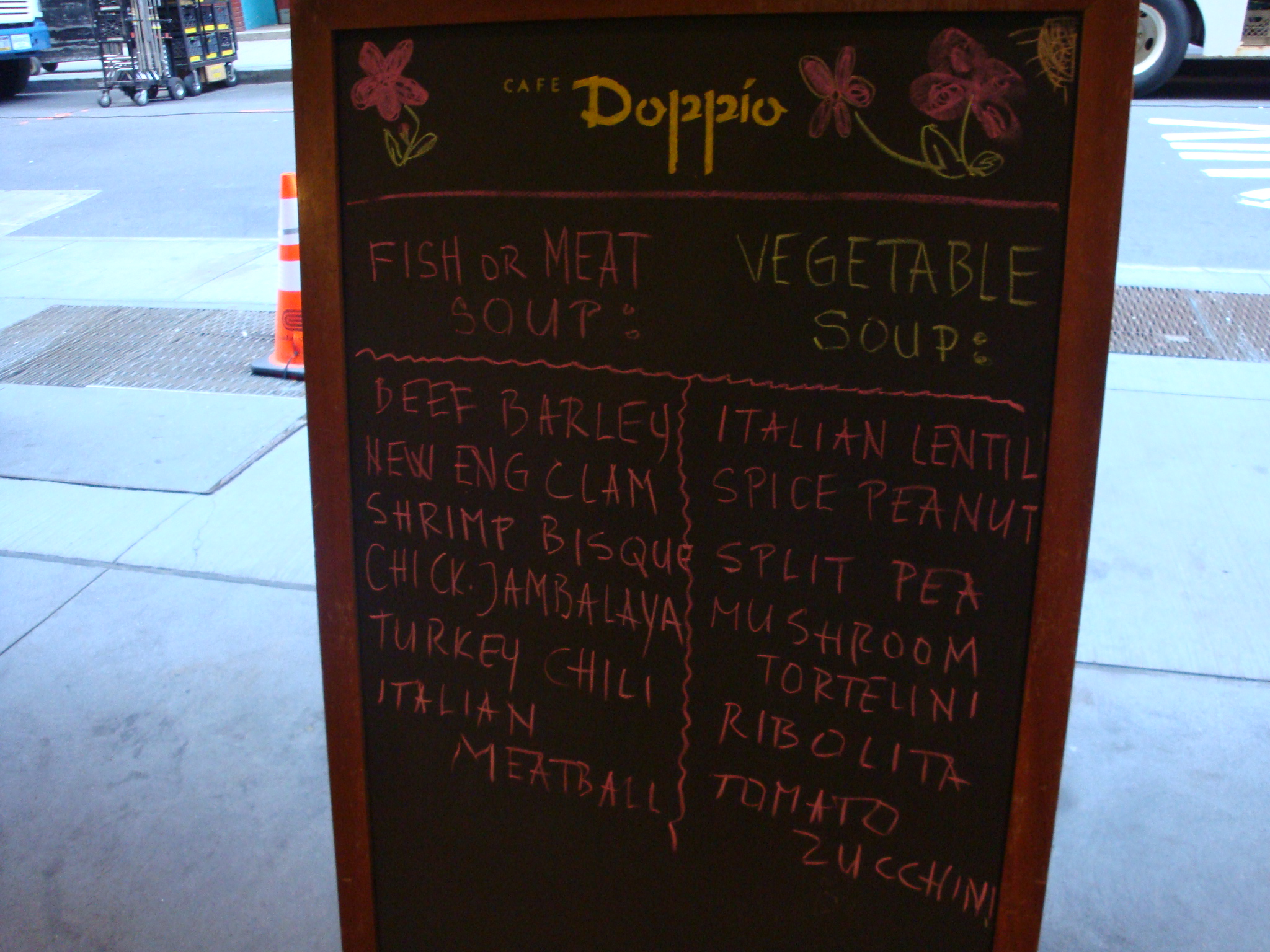 Sad news on the soup front – it looks like the beloved Cafe Doppio on Beaver (at Broad) has shuttered instead of simply closing for a fix-up session. I know a lot of you liked this place for their huge selection of soups, but they were also next door to a Hale & Hearty and around the corner and across the street from a Cosi and Au Bon Pain. Round that out with the Pret A Manger further up Broad St. and that seems like a little too much soup and sandwich competition in one area for a mom-and-pop store to survive.