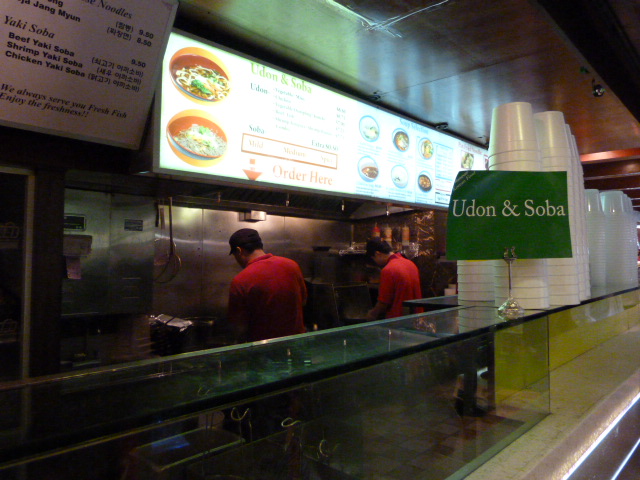 This site has previously had reviews of fried chicken noodle soup and other items from the Korean portion of Cafe Hanover at Hanover Sq. & Pearl, but for some inexplicable reason we’ve shunned the Kyedong chicken. This brand of Korean fried chicken is advertised in a poster in the window and in panels on the wall behind the front counter where you pay. Sandwiched between offerings of pork belly for $40 and whole chickens, there are portions of chicken at Midtown Lunch-friendly prices. Click through to check out the behemoth lunch box it comes in, housing equally oversized pieces of chicken.