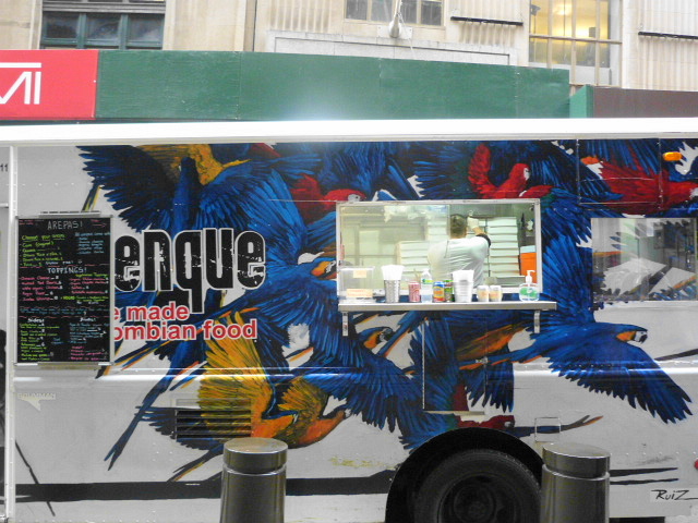 One day late last week I was absolutely starving come noon and that coincided with spying a new food truck making an appearance at the World Financial Center lot. Palenque, a truck serving arepas and other Colombian food, was going to be there, the weather was gorgeous and all of the stars seemed to be aligning for me to get meat-and-cheese-topped ground corn in my belly. That happened eventually, but during the hour-plus in between I realized that it really is important for food trucks to get their bearings before attempting to feed the hungry masses.