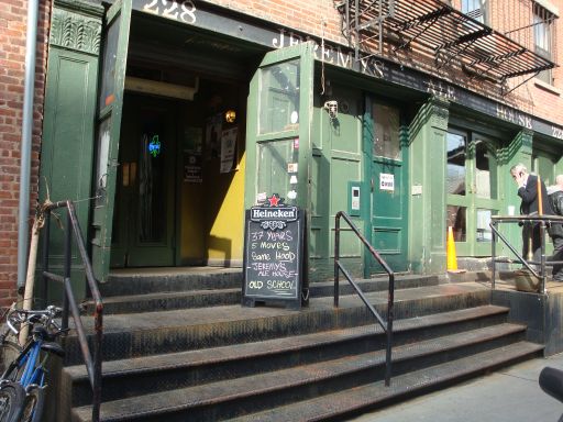 Usually when you pick a lunch spot it’s because they have something particularly delicious to check out or a pleasant eating environment. Or the food is dirt cheap. Jeremy’s Ale House on Front St. (btw. Peck Slip & Dover) has only a small fraction of those things, and really my co-lunch’er and I ended up there out of sheer curiousity of what kinds of people would be eating lunch here on a spring-like day. And what would the interior look like with sunlight shining in? The answer to those questions, plus a picture of the tasteful decor after the jump. Read more »