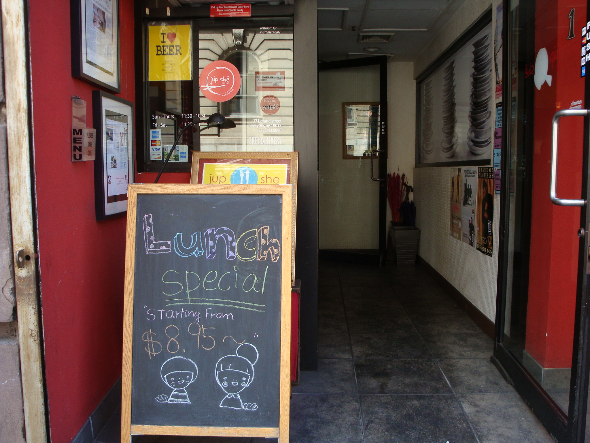 Our fellow bloggers over at Grub St. brought the sad news late yesterday that cheap (and delicious) Korean lunch spot Jup She on Grand St. ( at Baxter) has closed and the inside empty of furniture. It was one of the only affordable spots for Korean in that area and the lunch boxes were a good deal for anywhere in the city. Perhaps the allure of dozens of cheap Chinese and Vietnamese (and Italian) restaurants nearby was enough to keep people from eating here?