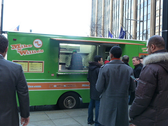 My lunch plans were all kinds of screwed up last week due to the rain and trying to track down a food truck that wasn’t parked where Twitter said it was. There were a bunch of other food trucks in the area, and I spotted the bright green of Mike N Willie’s poised to save me from my low blood sugar with no line. My first visit in February after the truck launched was disappointing and not exactly cheap, but I’m all about second chances so I ordered a taco and a slider hoping for hunger’s sake that this lunch would work out.