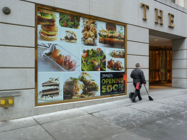 A couple of weeks ago we reported that kosher food hall Milk Street Cafe on Wall St. (nr. William) was on the verge of closing after a sharp decline in people eating there, and now it looks like that’s becoming a reality. They’ll close the doors for good after today. There was a whole lot of fanfare when the place opened in June, giving those who keep kosher a place where they could actually sit and eat lunch and didn’t only sell falafel. In the months since then the presence of barricades has increased on the street outside the restaurant due to Occupy Wall St., and Milk Street’s owner said that was the main reason for a 30% drop in business. Now the massive space will be empty, and hopefully not filled by some terrible chain restaurant. I only ate at Milk Street once when it opened, but were any of you regular customers who are going to miss this place?