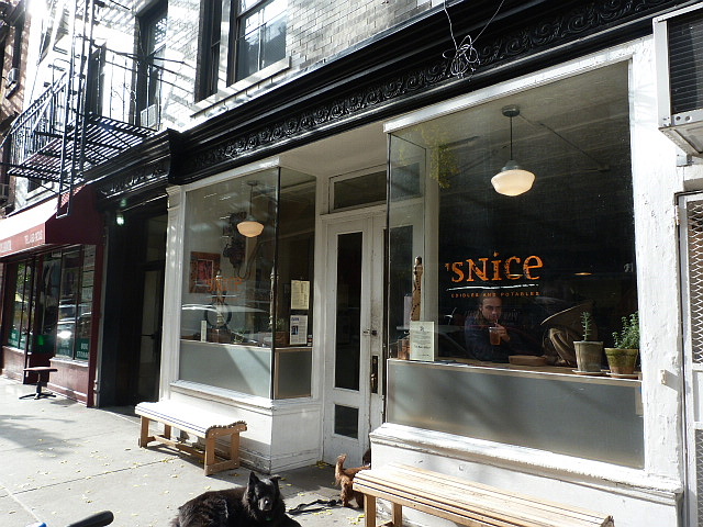 There are a handful of places downtown that offer Thanksgiving sandwiches year-round but some of them are more than $10 (yes, really) or others I shun because they throw it all in a wrap instead of between slices of bread. Last year I found a good specimen and this year I decided to branch out and try the Thanksgiving Leftovers sandwich at ‘sNice on Sullivan St. (btw. Prince & W. Houston). The difference between this and most other turkey/cranberry/stuffing sandwiches out there is that this one’s not just vegetarian, but vegan. Read more »