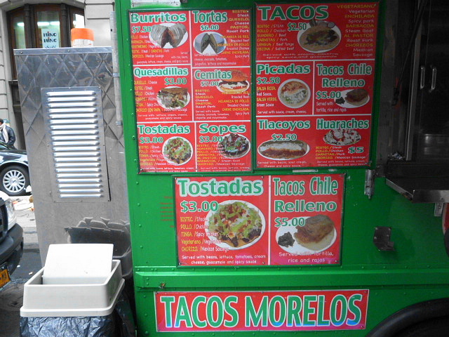 Throughout the past couple of months while office workers trickled back into the Financial District after the hurricane, and others took extended holiday vacations, Tacos Morelos continued parking in its regular spot at the corner of Wall & Pearl streets. Their tacos got a thumbs up from me, but I was curious about their sandwiches and headed over for a torta.