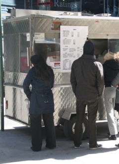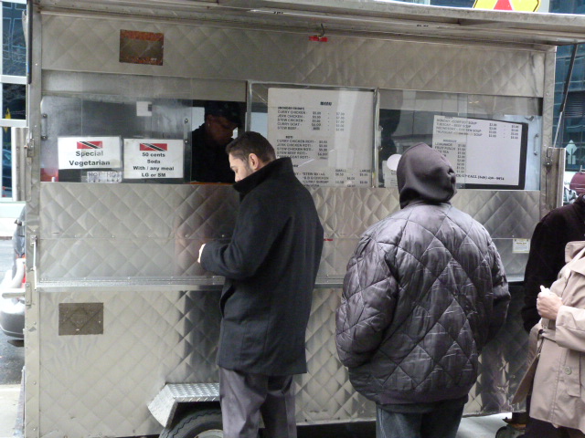 One of the things I think we do right downtown is food from street carts. Legendary street meat? Check (check, check, and check). Barbecue? Check. Caribbean soul food? Check and check. And that’s all not even counting the trucks that bounce back and forth between here and Midtown! (I do really want a German sausage cart though.) Yesterday, Eater gave a brief lament about how bad the food situation is in the Financial District. I just don’t think they’ve taken the time to explore our riches, and the same goes for all those poor (generous, as it was a “$5 donation day”) saps standing in line at the Chipotle opening. Well, hopefully that’s what we’re doing with this website. We’re doing our best to find those lunches we think are worth knowing and bringing them to your computer screen. What you do with that information once it’s there is entirely up to you. But I hope you’re passing it on, telling people about the food you think is worth it, not for the benefit of this website, but for the benefit of the people serving the food. Over the course of my time writing for this site, my appreciation for those men and women has grown enormously. Their dedication to their livelihood really is inspiring. It puts the mailman to shame (no offense, mailpeople). My point is these folks are dependent on our support. Without us, they’d be gone and without them, we’d be standing in a 30 minute line for Chipotle. No matter how much you love Chipotle, I guarantee you that would suck. So please, spread the word about your favorite street vendors. You don’t even have to tell them about Midtown Lunch, take all the credit yourself for the ones you think are gems. All I ask is that you tell just one person about the food Downtown that’s worth eating before it’s all gone.
