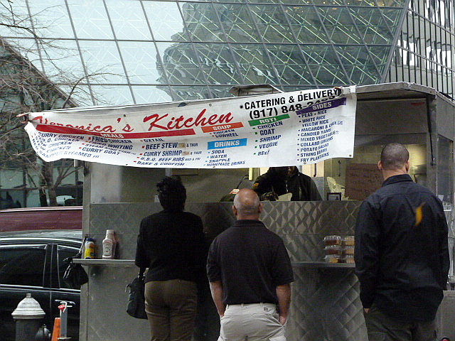 One of the things I think we do right downtown is food from street carts. Legendary street meat? Check (check, check, and check). Barbecue? Check. Caribbean soul food? Check and check. And that’s all not even counting the trucks that bounce back and forth between here and Midtown! (I do really want a German sausage cart though.) Yesterday, Eater gave a brief lament about how bad the food situation is in the Financial District. I just don’t think they’ve taken the time to explore our riches, and the same goes for all those poor (generous, as it was a “$5 donation day”) saps standing in line at the Chipotle opening. Well, hopefully that’s what we’re doing with this website. We’re doing our best to find those lunches we think are worth knowing and bringing them to your computer screen. What you do with that information once it’s there is entirely up to you. But I hope you’re passing it on, telling people about the food you think is worth it, not for the benefit of this website, but for the benefit of the people serving the food. Over the course of my time writing for this site, my appreciation for those men and women has grown enormously. Their dedication to their livelihood really is inspiring. It puts the mailman to shame (no offense, mailpeople). My point is these folks are dependent on our support. Without us, they’d be gone and without them, we’d be standing in a 30 minute line for Chipotle. No matter how much you love Chipotle, I guarantee you that would suck. So please, spread the word about your favorite street vendors. You don’t even have to tell them about Midtown Lunch, take all the credit yourself for the ones you think are gems. All I ask is that you tell just one person about the food Downtown that’s worth eating before it’s all gone.
