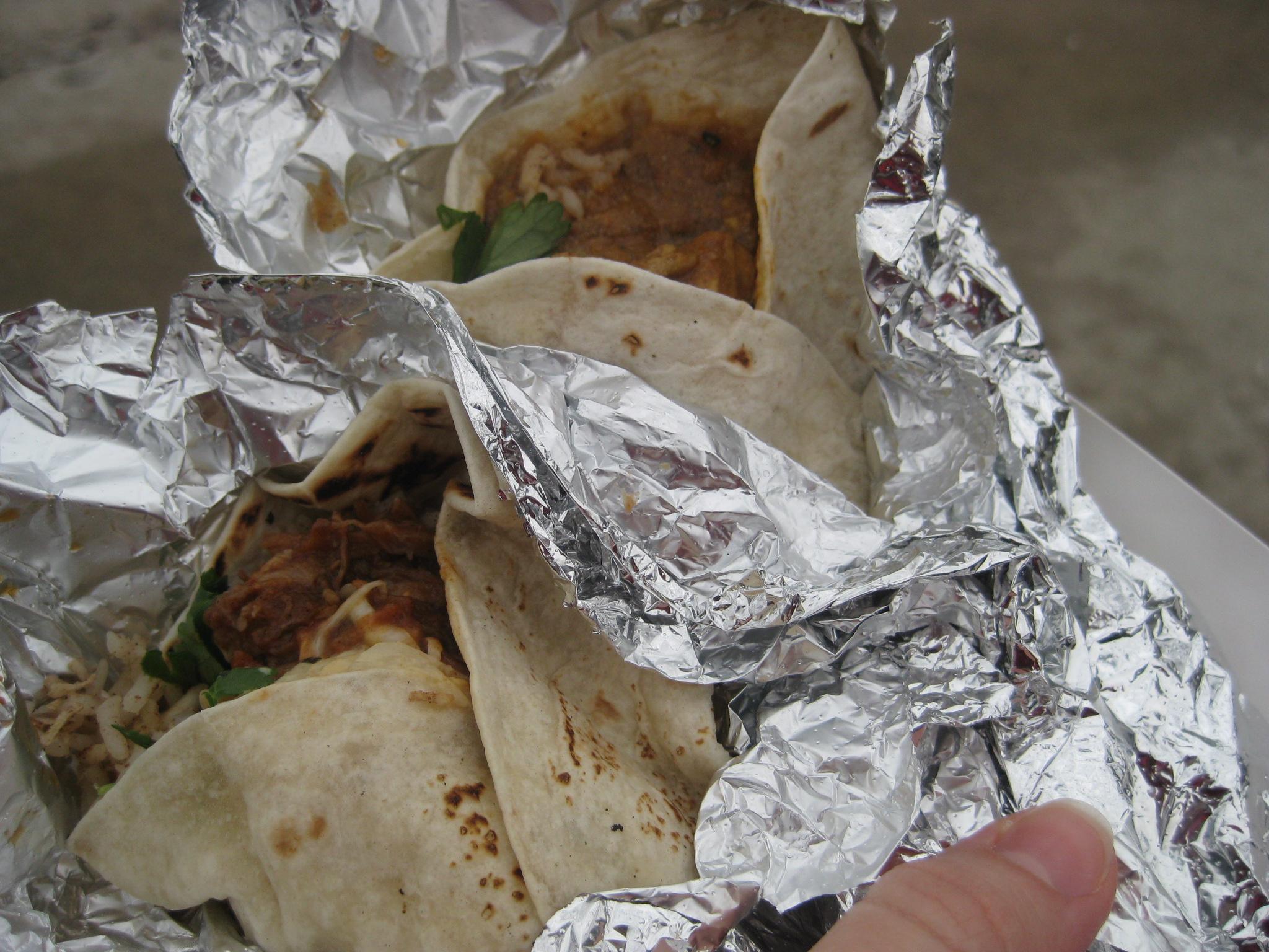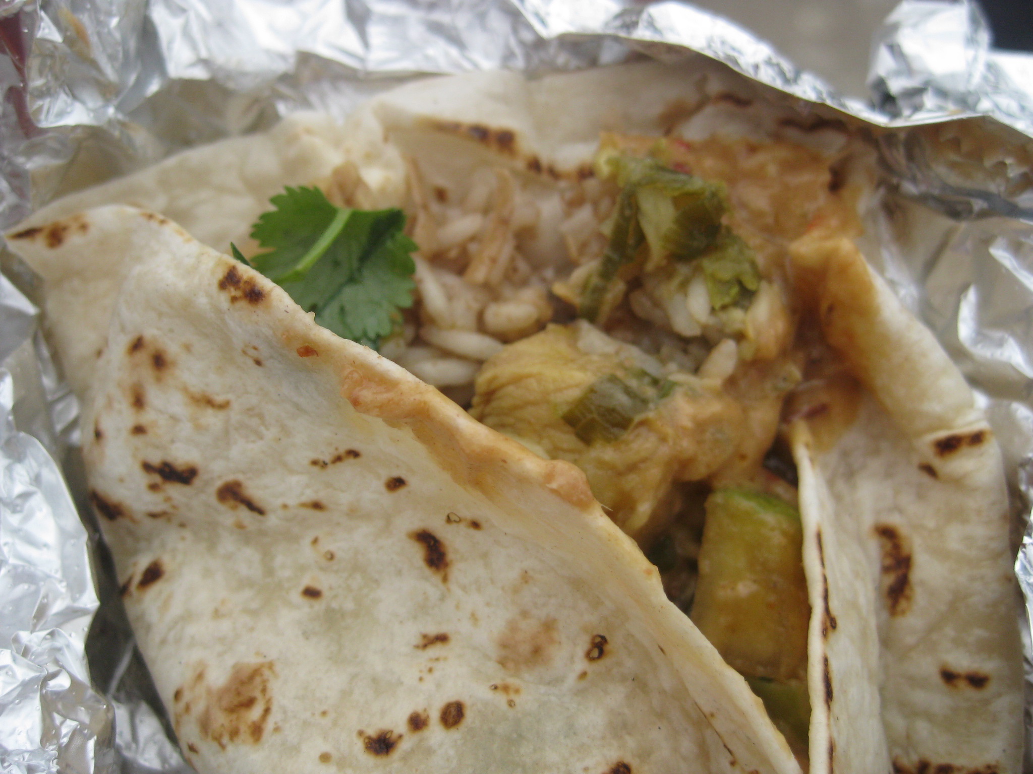 The pulled pork and tikka masala were my next two favorites. The pulled pork, the most traditional of the fillings, would not disappoint a taco connoisseur with its crispy, bright jicama coleslaw and shreds of pork. The tikka masala, on the other hand, is totally out of place inside a taco- but I didn’t mind. Somehow the truck guys nailed the traditional flavors, though the rice was a bit undercooked.