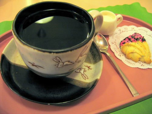 With a plethora of choices to choose from, I opted for the House Blend. It was a splurge at a $4.50 a cup (– take-out prices for the same coffee were significantly cheaper at $2.25 for a 16 ounce cup). Nevertheless, the presentation of the complexly rich coffee in an artisan teacup decorated with friendly bunnies, alongside a sprinkle-frosted sugar cookie made for a lovely coffee experience and a happy ending to my meal at Ray’s Cafe.