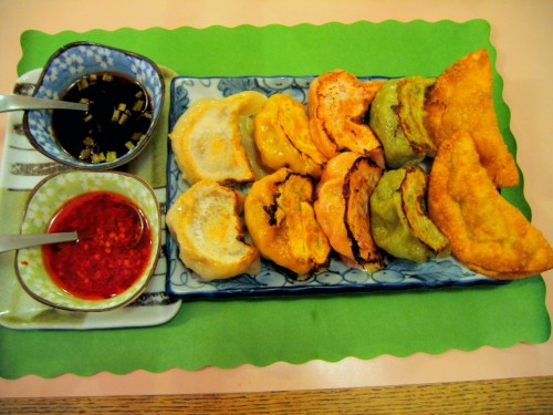 When I noticed a section devoted to dumplings, my taste buds began to salivate. The simple dumpling often gets overlooked at restaurants, disguised as an appetizer or accompanying side. However, in Taiwanese cuisine, dumplings are much regarded as a meal in itself – and an especially auspicious food choice during Chinese New Year! I ordered the dumpling sampler, an assortment of ten handmade dumplings, featuring five different flavors, for $8.50.