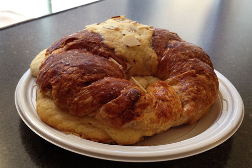 Most of the items offered by Swiss Haus are either cakes or desserts. Still, you can find a few items to fill you up for lunch. My first offering was the croissant ($3.50), which was pretty sizable. It had a rum-almond flavor and hit the spot.