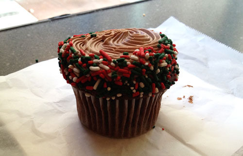 Of course, at Swiss Haus, you’re doing yourself a disservice if you don’t try one of the shop’s signature sweets. Cupcakes come in two sizes, small ($2) and large ($5). I tried the “small” chocolate with sprinkles, and it’s by no means tiny. I’d say it was the right size, as the large cupcake really should be shared by two people (or one person with a bottomless stomach). Because Swiss Haus is a cakery, the cupcake is essentially a smaller version of some of its cakes and uses a lot of the same ingredients. The cream, which was chocolate butter cream, is addictive. Trying a cupcake is a great way to sample the Swiss Haus cake cream. I have had very few cupcakes in the city better than this one.