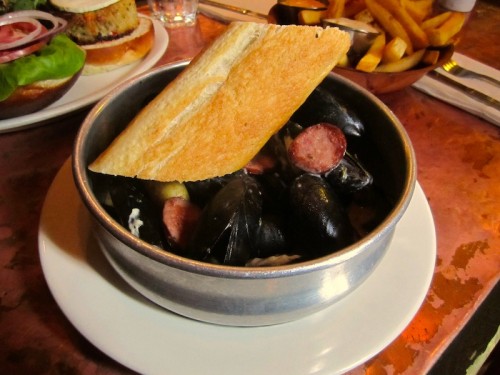 The mere mention of a Belgian tavern instantly prompts an intense craving for mussels, so I heeded the ringing of my Pavlov’s Bell and decided to order mussels for lunch. With six different varieties of mussels to choose from, I opted for the most unique and protein-laden option of “Moules Sausage, Boursin, and Potato.” ($8.99)